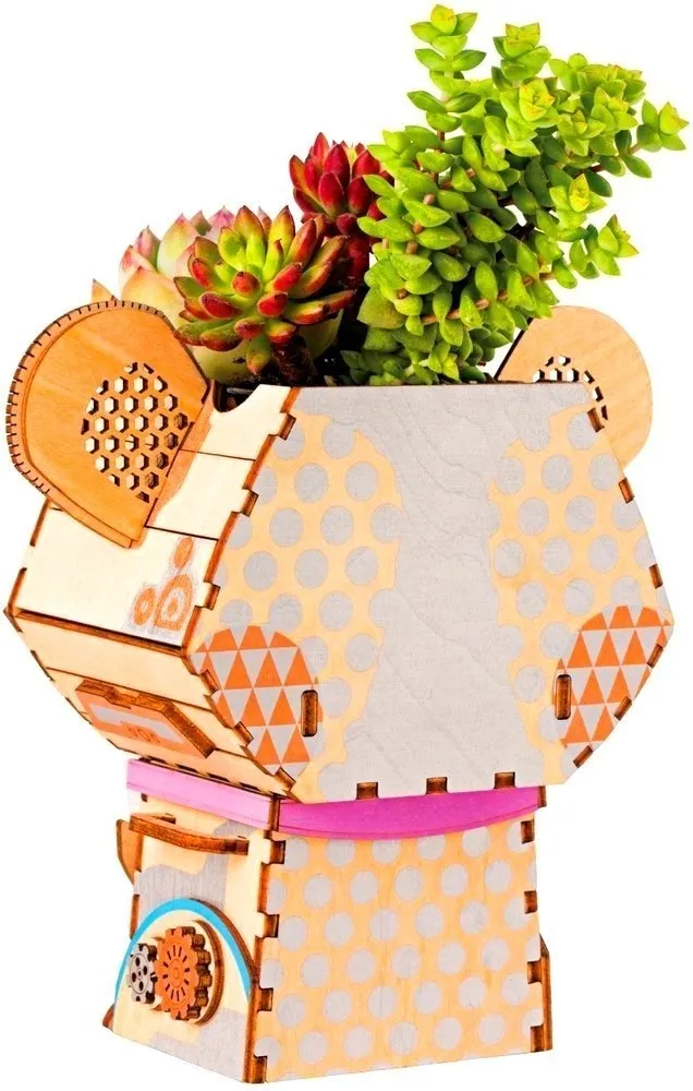Po złożeniu układanka służy jako kolorowa doniczka, w której możesz posadzić żywe rośliny.