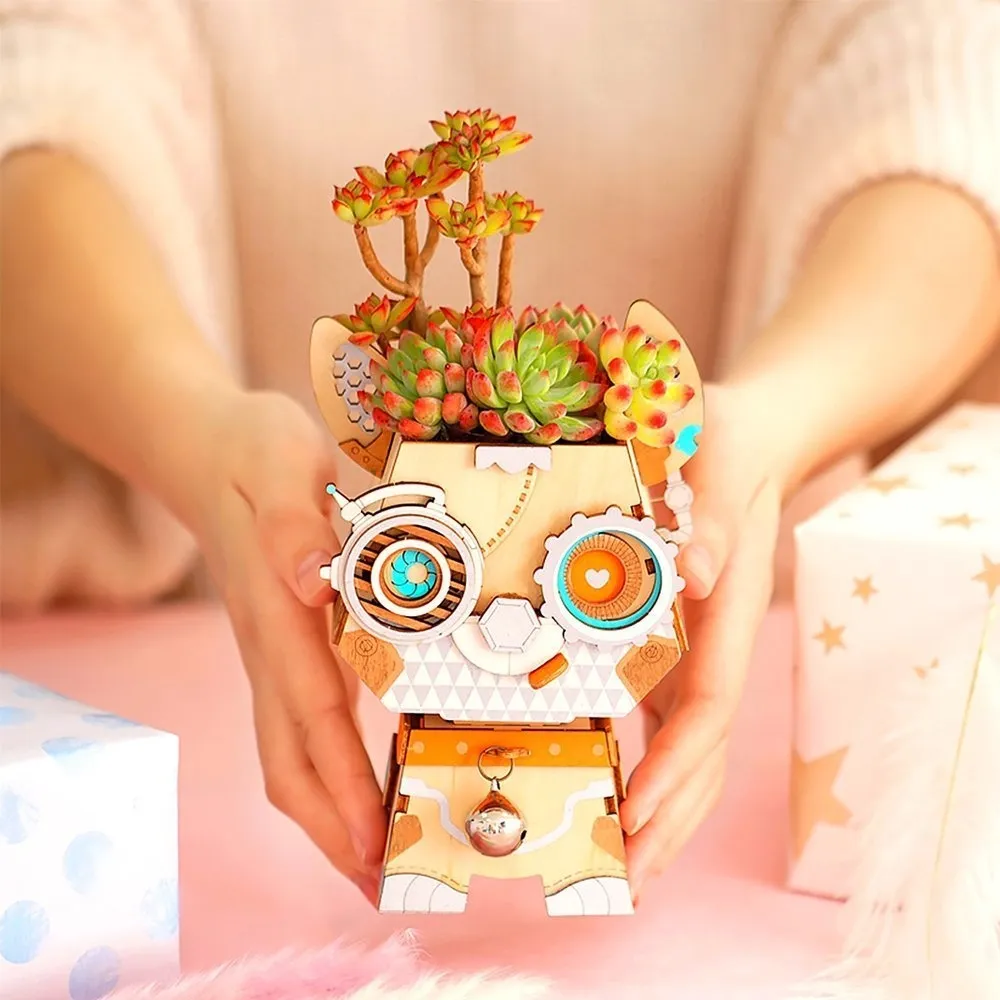 Po złożeniu układanka służy jako kolorowa doniczka, w której możesz posadzić żywe rośliny.