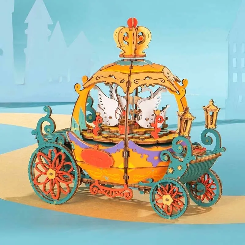 Seria kolorowych puzzli 3D o bajkowym wyglądzie i z elementem grającym.