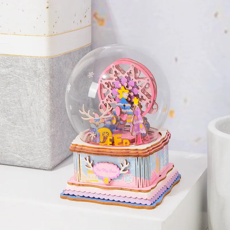 Nakręcenie mechanizmu spowoduje odtworzenie melodii oraz wprawi postaci w ruch.