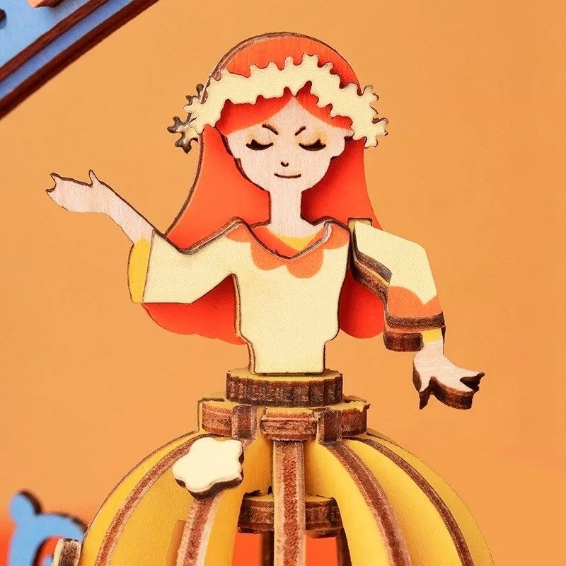 Nakręcenie mechanizmu spowoduje odtworzenie melodii oraz wprawi postaci w ruch.