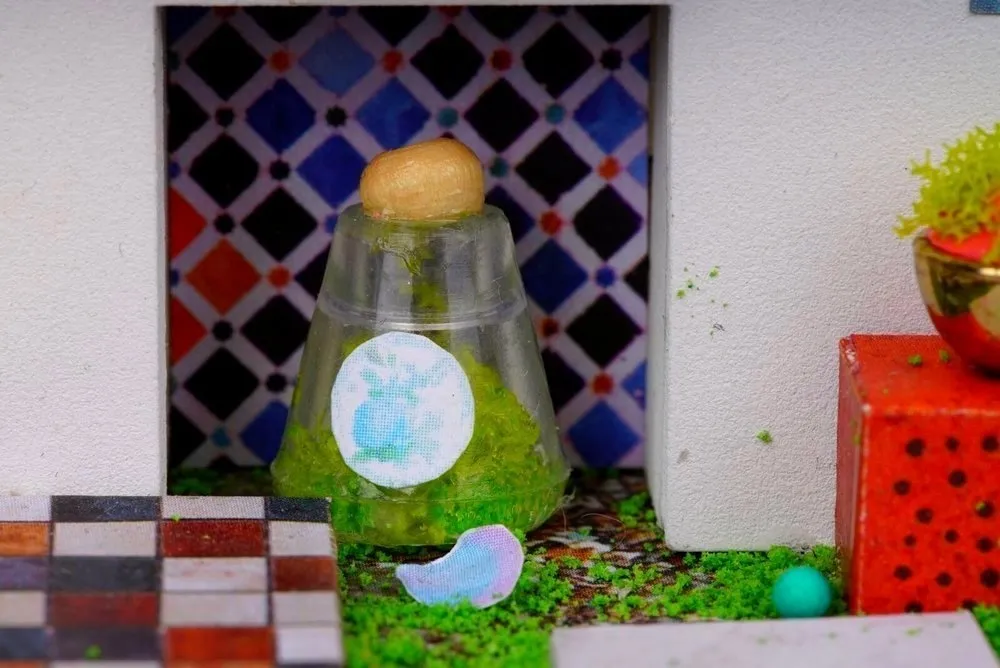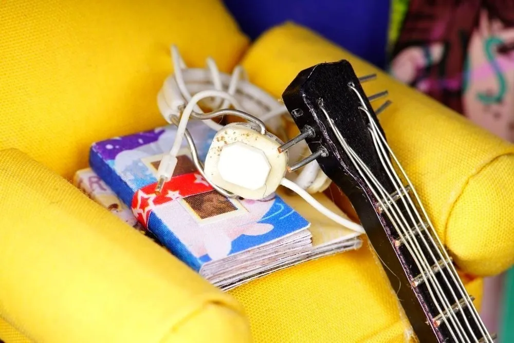 Użyte materiały: Drewno, Plastik, Metal, Papier, Farby, Diody LED, Pędzel