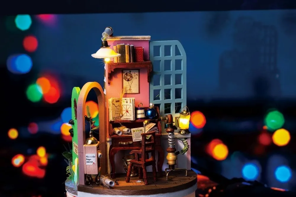 Dodatkowego uroku nadaje całości oświetlenie LED, dzięki któremu domek może pełnić rolę nastrojowej dekoracji lub lampki nocnej. Opakowanie oprócz czytelnej, obrazkowej instrukcji zawiera także baterie, pędzelek, farby akrylowe, przezroczysty, bezwonny klej oraz pęsetę ułatwiającą montaż małych elementów.
