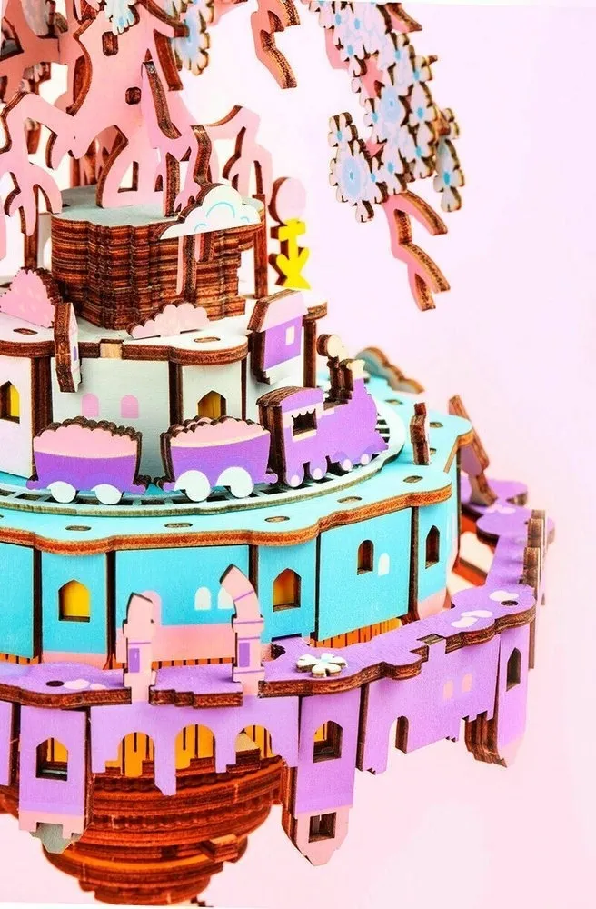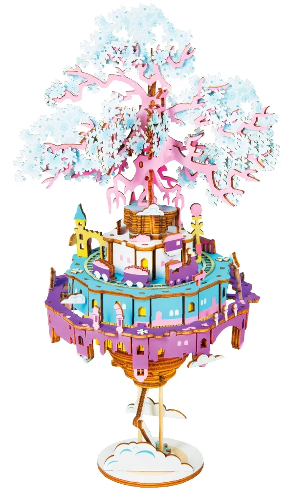 Seria kolorowych puzzli 3D o bajkowym wyglądzie i z elementem grającym.