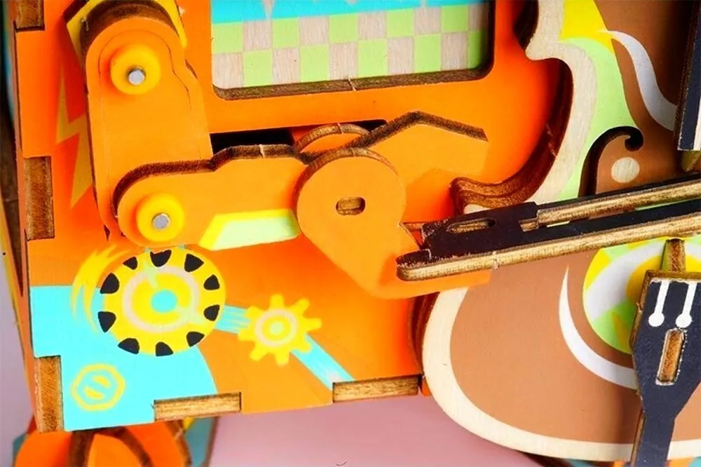 Nakręcenie mechanizmu spowoduje odtworzenie melodii oraz wprawi postaci w ruch.