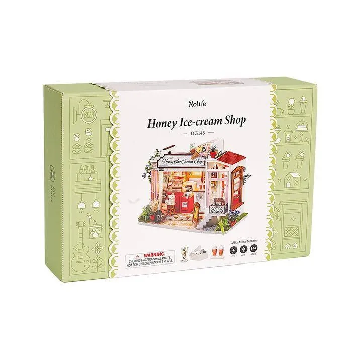 Dodatkowego uroku nadaje całości oświetlenie LED, dzięki któremu lodziarnia może pełnić rolę nastrojowej dekoracji lub lampki nocnej. Opakowanie oprócz czytelnej, obrazkowej instrukcji zawiera także baterie, pędzelek, farby akrylowe, przezroczysty, bezwonny klej oraz pęsetę ułatwiającą montaż małych elementów.